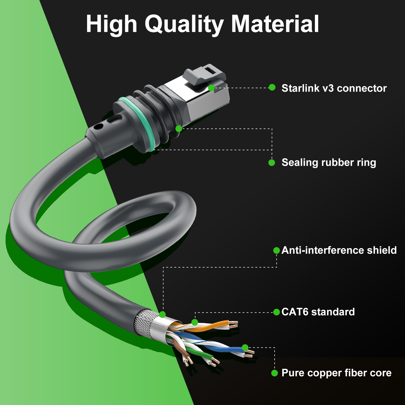 - 【Peak Performance】Our starlink replacement cable ensures peak performance. With patented advanced soldering-type RJ45 connectors, engineered for all-weather, heavy-duty use, reduce 50% contact resistance.
